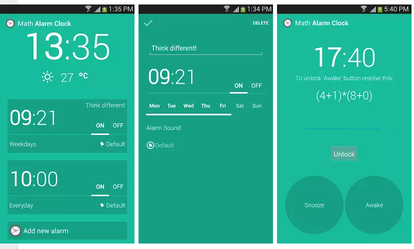 Cara kerjanya adalah saat alaremnya berbunyi, Anda tidak bisa langsung mematikan suaranya begitu saja. Agar suaranya benar-benar mati, Anda diharuskan mengerjakan soal matematika yang menuntutmu berpikir terlebih dahulu. Alhasil mau enggak mau Anda harus bangun untuk melanjutkan aktivitas lagi.