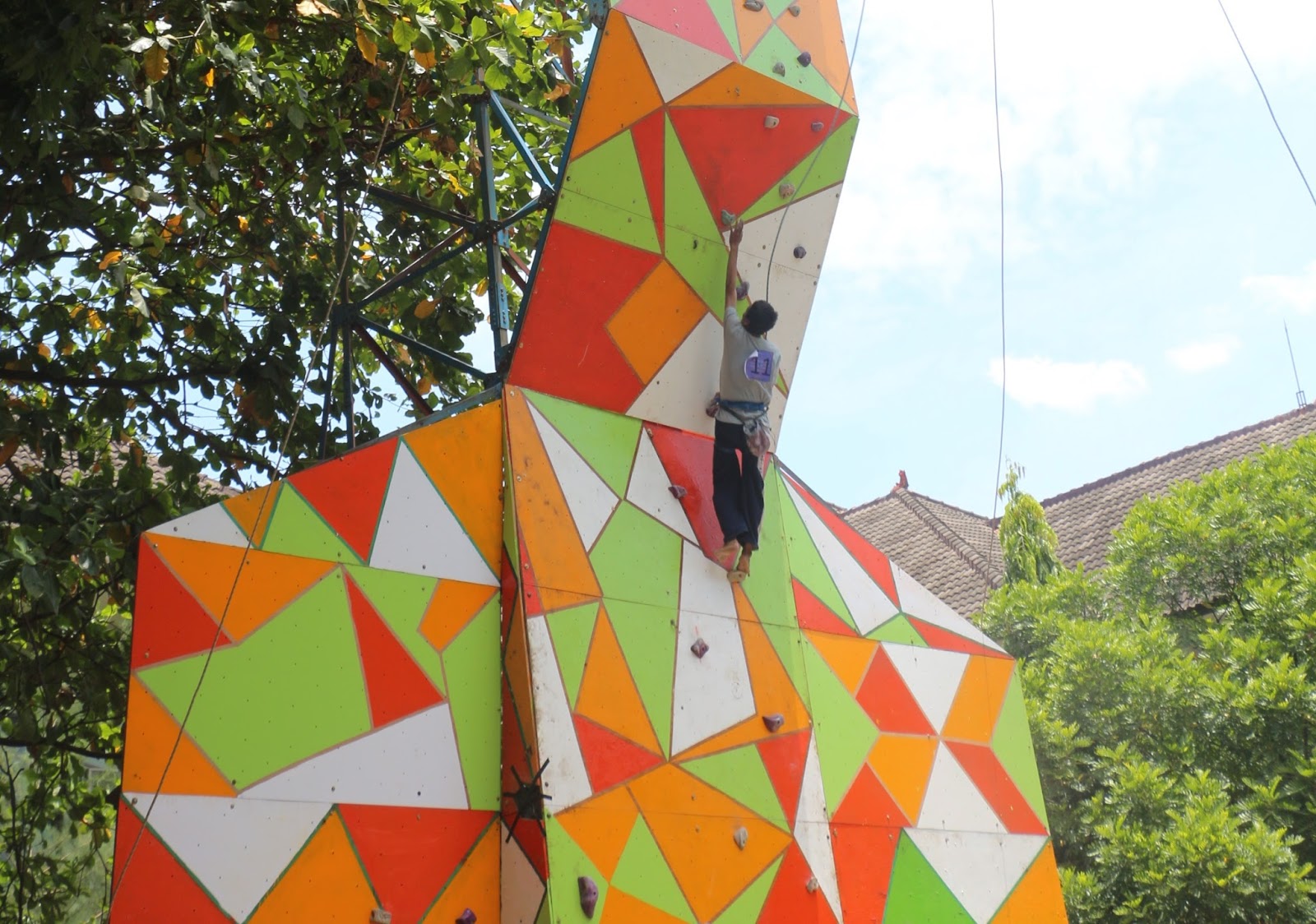 | Salah seorang peserta sedang memanjat dalam lomba wall climbing , Orsenik 2017, Sabtu (23/9). (Fahmi/Amanat) |