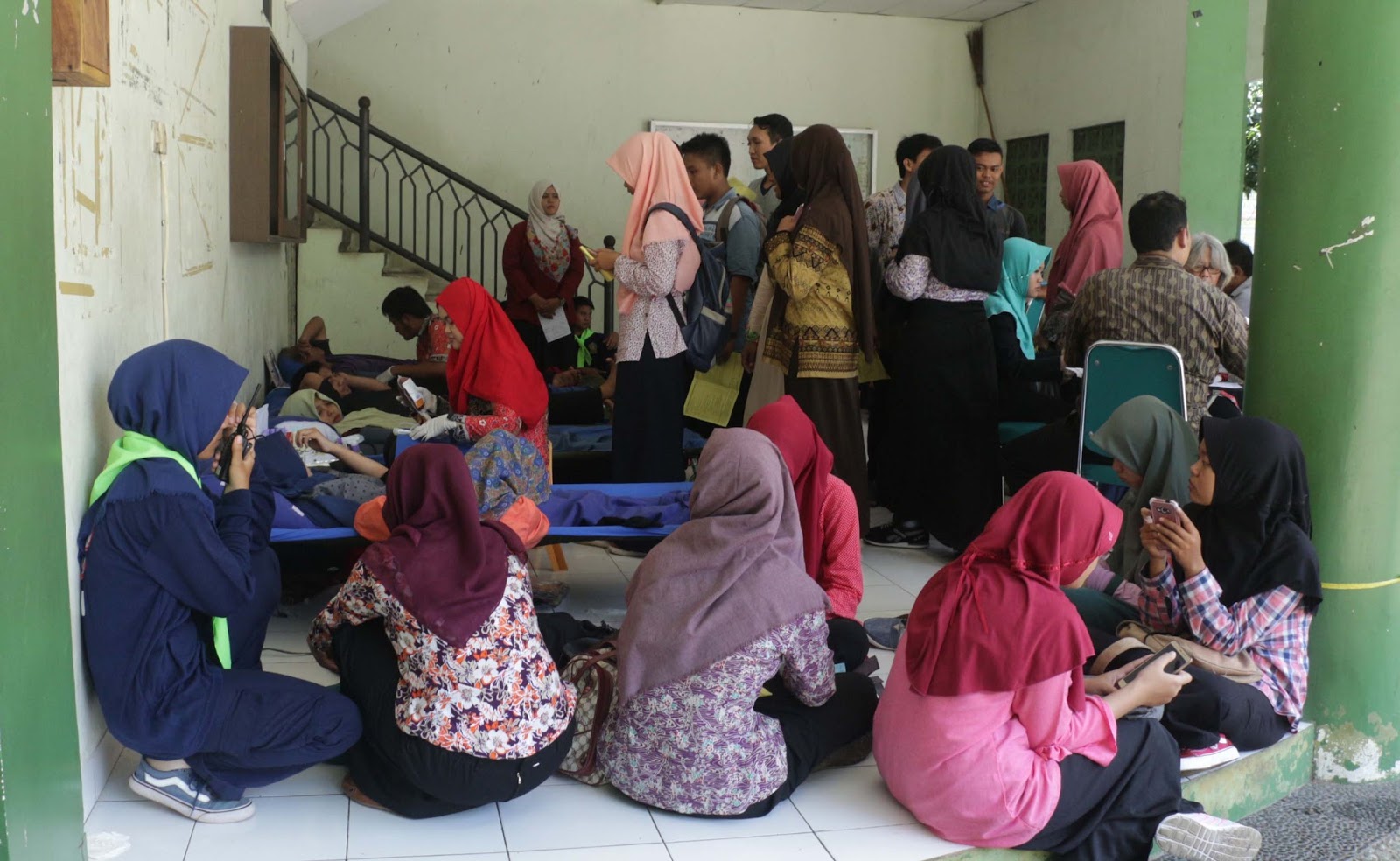 | Antrean Donor Darah: Terlihat beberapa mahasiswa sedang mengantre untuk mendonor darah di stan yang terletak di Gedung N FITK UIN Walisongo Semarang. (Amanat/Fajar BA) |