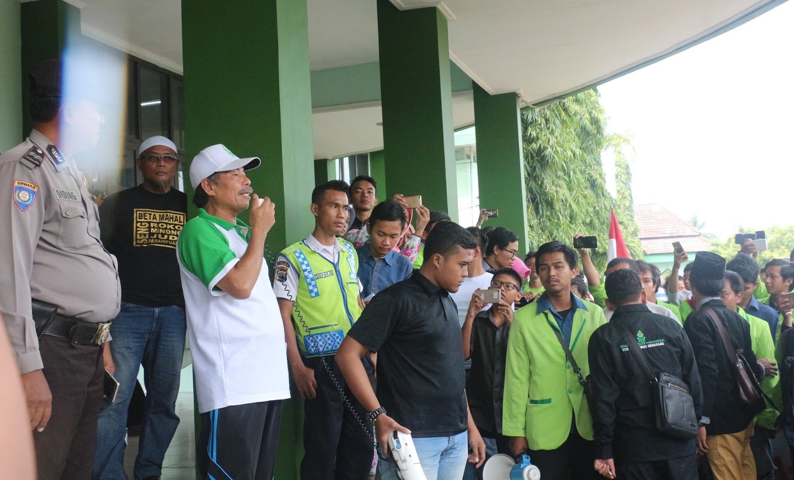 Setelah pendemo menggelar orasi selama beberapa saat, Wakil Rektor III Bidang Kemahasiswaan dan Kerjasama UIN Walisongo Suparman Syukur menemui demonstran.